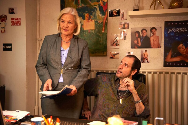 Seit dem Tod des Firmenchefs schmeißen Ingrid (Hildegard Schmahl, l.) und Regisseur Volker (Helmfried von Lüttichau, r.) die Pornofilmproduktion "MarieX". Nun müssen die beiden der Erbin mitteilen, dass sie keine gut gehende Internetfirma, sondern eine marode Sexfilm-Produktion geerbt hat ...