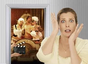 Seitdem Marie (Valerie Niehaus, r.) eine Pornoproduktion geerbt, läuft ihr wohlgeordnetes Leben total aus dem Ruder. Und nun beschließt der Elternbeirat der Schule ihrer Kinder auch noch, eine Anti-Pornogruppe (Judith Rosmair, M., Saskia Fischer, l.) zu gründen. Da hilft auch kein Versteckspiel mehr ...