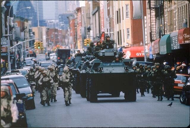Mit riesigen Geschützen sorgt das Militär in New York für die Durchsetzung des Kriegsrechts und damit für die angebliche Sicherheit amerikanischer Bürger ...