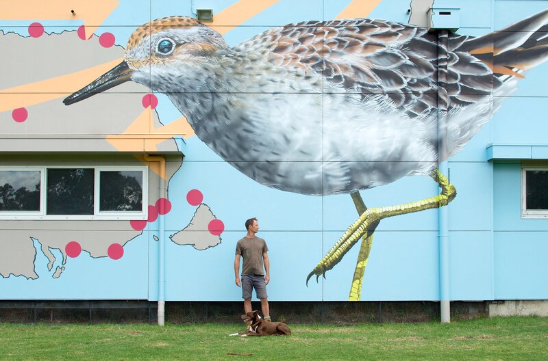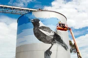 Für den Künstler Geoffrey Carran ist es das erste Mal, dass er seine lebensechten Vogelporträts auf ein riesiges Getreidesilo überträgt.Bild: © MedienKontor/Geoffrey Carran / © MedienKontor/Geoffrey Carran