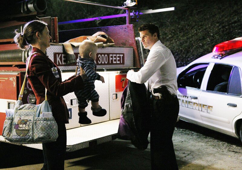 Brennan (Emily Deschanel) und Booth (David Boreanaz) nehmen sich des Babys an, das bei dem Unfall aus dem Wagen geschleudert wurde. Mit Hilfe des Kindes wollen die beiden nach dem Mörder der verunglückten Frau suchen.Bild: © RTL
