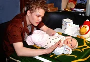 Malte (Matthias Schweighöfer) kümmert sich liebevoll um das Findelkind (Elvis Grabbe). Er hat den Winzling sofort ins Herz geschlossen und will sich um das Kind kümmern, bis er die leibliche Mutter ausfindig gemacht hat.Bild: © RTL / Wolfgang Meier