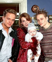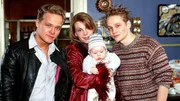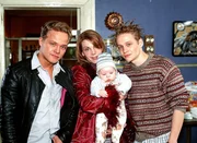 In den Hauptrollen: (v.li.) Matthias Koeberlin als Arne, Marek Harloff als Belinda mit Elvis Grabbe als Baby Robert, Matthias Schweighöfer als Malte.Bild: © RTL / Wolfgang Meier