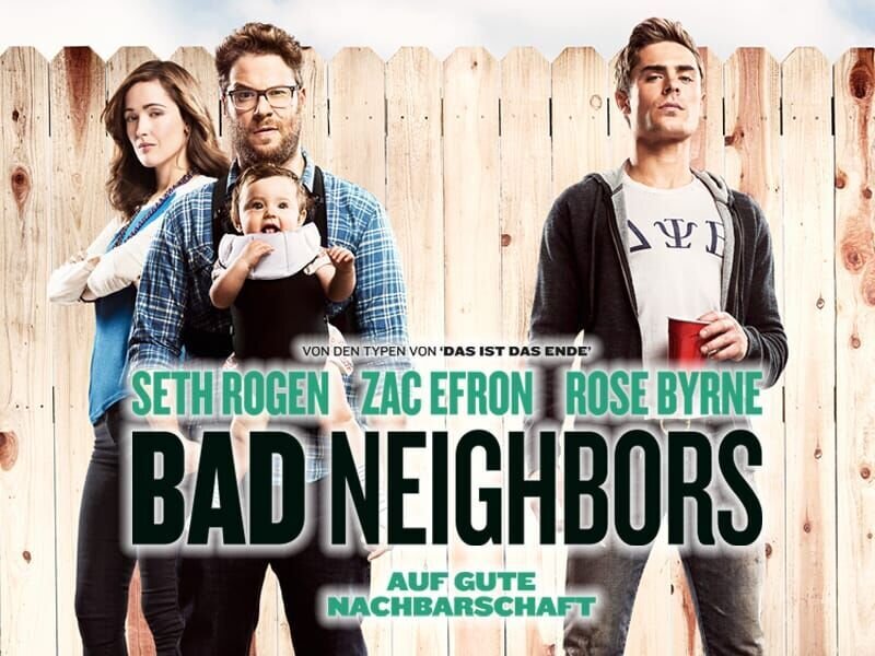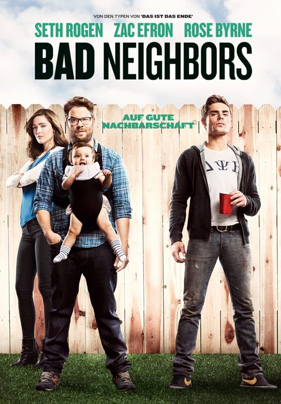 Kelly und Mac Radner sind vor Kurzem Eltern geworden. Mit Tochter Stella haben sie ein hübsches Reihenhaus bezogen. Doch ihr Traum vom "schöner Wohnen" ist nur von kurzer Dauer. Eine feierwütige Studentenverbindung zieht im Nachbarhaus ein und macht die Nächte zum Tag. Bald eskaliert ein irrwitziger Nachbarschaftskrieg. Zac Efron und Seth Rogen lassen die Muskeln spielen in einer Komödie um den harten Gegensatz zweier Lebensstile. Als die Studentenverbindung Delta Psi Beta in das Haus direkt neben Kelly (Rose Byrne) und Mac (Seth Rogen) einzieht, verspricht der muskelbepackte Präsident der Verbindung, Teddy (Zac Efron), den beiden, sich an die Auflagen eines geregelten Miteinanders, vor allem bezüglich der Nachtruhe, zu halten. Kelly und Mac wollen nicht uncool erscheinen und feiern eine erste Party mit. Aber der nächtliche Lärm reißt nicht ab. Teddy und seine Jungs scheinen gar nichts anderes im Leben zu machen, als nachts drogen- und alkoholgeschwängerte Endlos-Partys abzufeiern. Kelly und Mac rufen die Polizei, obwohl sie Teddy versprochen hatten, das nicht zu tun. Teddy droht mit Vergeltung - der Beginn eines Kleinkriegs, bei dem sich die Beteiligten mit findigen Gemeinheiten nur so zu überbieten scheinen. Obwohl Mac schlussendlich gezwungen ist, seine Beschwerde bei der Polizei zurückzuziehen, lässt sich Teddy nicht besänftigen. Er vermüllt Macs Vorgarten, schneidet den Buchsbaum der Radners in eine obszöne Form und beobachtet mit seinen Kumpels sowie der versammelten Party-Gemeinde Mac und Kelly beim Sex. Beschwerden bei der Dekanin der Uni (Lisa Kudrow) laufen ins Leere. Mac und Kelly sind beim Kampf gegen Delta Psi Beta auf sich gestellt. Mit einem absichtlich herbeigeführten Wasserschaden hoffen die jungen Eltern, die WG zum Auszug zwingen zu können. Doch die schlagfertigen Jungs sanieren sich mit dem Verkauf individuell gefertigter Dildos in ihrem Vorgarten und schaffen sogar einen Whirlpool an. Kelly und Mac sind sich einig: Eine neue Strategie muss her, um die WG zu vertreiben. Sie muss von innen zersetzt werden, um auseinanderzufallen. Gemeinsam mit ihren Freunden Jimmy (Ike Barinholtz) und Paula (Carla Gallo) eröffnen die Radners ihre Gegenoffensive undercover. Der Gartenzaunkrieg der "Bad Neighbors" war im Kino so erfolgreich, dass eine Fortsetzung folgte. Der erste Teil spielte allein in den USA 150 Millionen Dollar ein, weltweit waren es 226,5 Millionen. Seth Rogen über seine Rollenwahl: "In meinem Alter sind wir alle mehr oder weniger verheiratet und haben Kinder. Ich fand es deshalb cool, einen Film über ein Ehepaar mit Baby zu machen, das sich ein wenig mehr Party in seinem Leben wünscht." "Neben herrlichem Slapstick bietet die Komödie witzige Dialoge und zwei Darsteller, die Rogen fast die Show stehlen: Rose Byrne ("Brautalarm") ist göttlich als intrigante Gattin. Und Zac Efron ("High School Musical") tritt hier genüsslich sein blitzsauberes Disney-Image mit Füßen." (alle Zitate aus "TV Movie")...