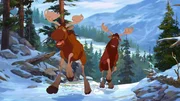Koda und Kenai reiben sich nach dem Winterschlaf verwundert die Äuglein: Bei den anderen Waldbewohnern sind die Frühlingsgefühle ausgebrochen! Sogar die schrägen Elche Benny und Björn versuchen mit zwei hübschen Elchdamen anzubandeln. Doch eines Tages trifft Kenai auf das Menschenmädchen Nita, seine Freundin aus Kindertagen, was dem kleinen Koda ein Dorn im Auge ist. Dennoch brechen sie gemeinsam zu einer abenteuerlichen Reise auf, auf der Kenai die schwerste Entscheidung seines Lebens treffen muss... Bärenbrüder 2 knüpft an die Geschichte des Films Bärenbrüder an. Kenai (gesprochen von Daniel Brühl) ist mittlerweile schon länger ein Grizzly; er und der Bär Koda sind unzertrennlich geworden. Als das Duo aus dem Winterschlaf erwacht, hat sich im Wald einiges verändert: Überall blühen Blumen, es weht ein lauer Wind und die anderen Waldbewohner geben sich ganz ihren Frühlingsgefühlen hin. Sogar die tollpatschigen Elche Benny und Björn versuchen, zwei hübschen Elchdamen zu imponieren. Eines Tages trifft Kenai auf das Menschenmädchen Nita, seine Freundin aus Kindertagen. Obwohl Koda eifersüchtig ist, brechen die drei gemeinsam zu einer aufregenden Reise auf, in deren Verlauf Kenai vor die schwerste Entscheidung seines Lebens gestellt wird.