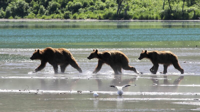 Halbwüchsige Braunbären auf dem Weg zum Fischfang. Weiteres Bildmaterial finden Sie unter www.br-foto.de.Bild: © MDR/ALTAYFILM