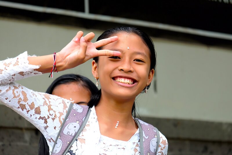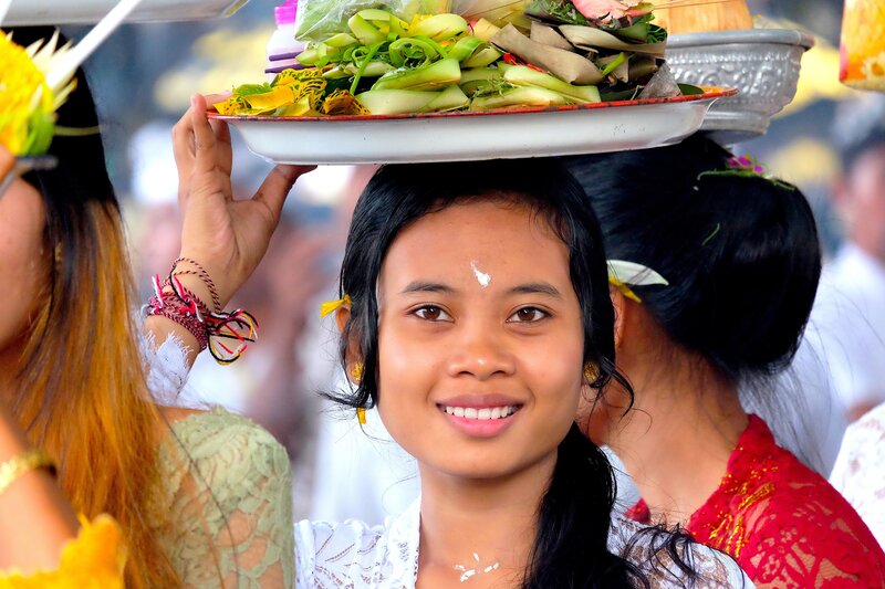 Segnung einer jungen, hinduistischen Balinesin mit heiligem Wasser.Bild: © 3sat