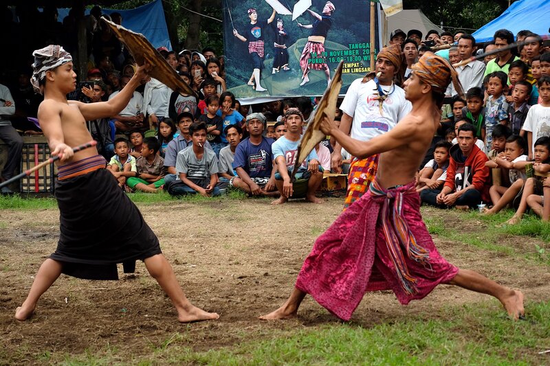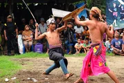 Ritueller Stockkampf in der Tempel/Moschee Anlage von Lingsar.Bild: © 3sat