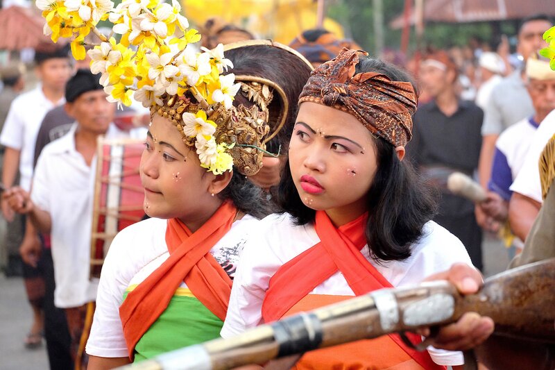Gemeinsame Prozession von Hinduisten und Muslimen beim jährlichen Lingsar Festival.Bild: © 3sat