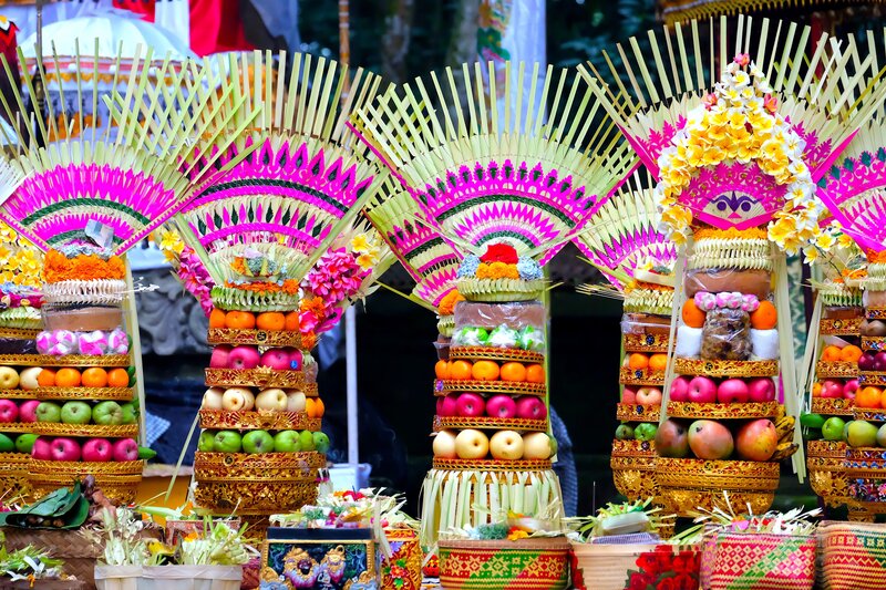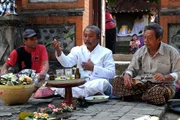 Rituelle Opfergaben für eine hinduistische Zeremonie im Sangeh Tempel auf Bali.Bild: © 3sat