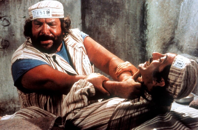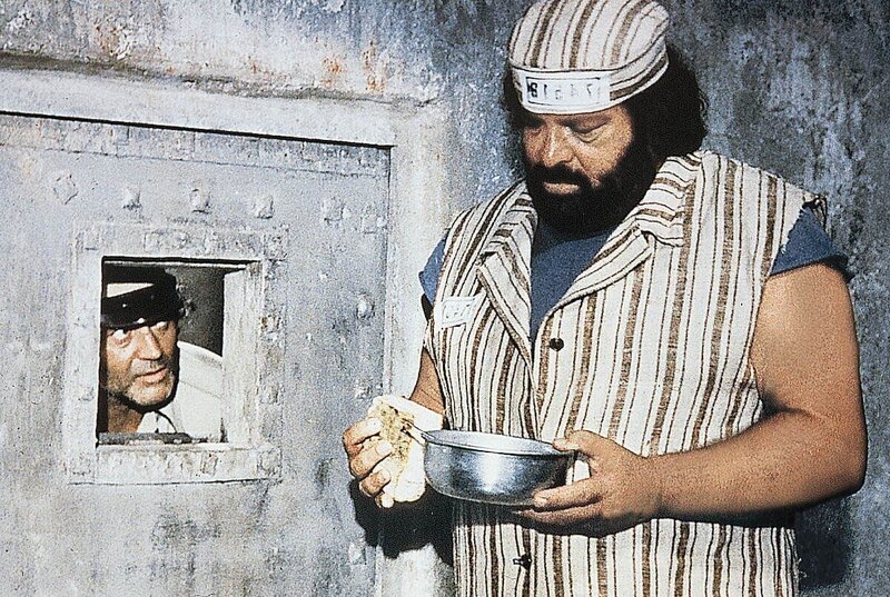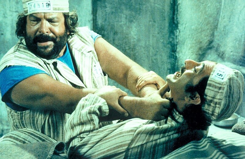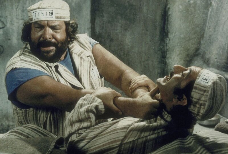 Im Gefängnis trifft Joe (Bud Spencer, l.) auf seinen alten Widersacher Manuel (Mario Scarpetta, r.). In gewohnter Manier rechnet er mit ihm ab ...Bild: © Tele München Gruppe