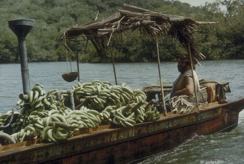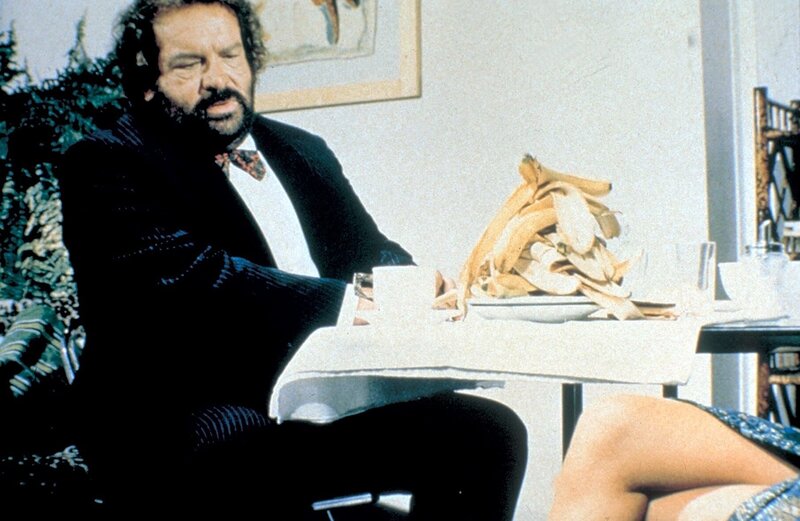Joe (Bud Spencer), der bisher sein Geld als Bananenhaendler im Dschungel verdiente, stellt bei seinem unfreiwilligen Aufenthalt in der Zivilisation fest, dass es ausser dem krummen gelben Obst auch noch andere schoene Dinge im Leben gibt.Bild: © 4+