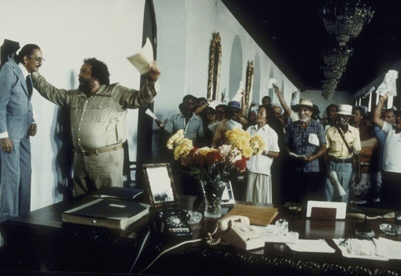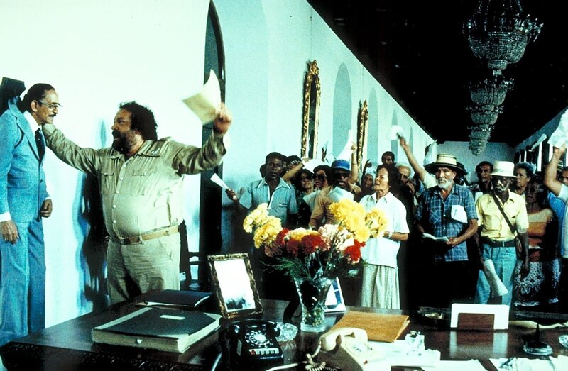 Hilfe zur Selbsthilfe: Banana Joe (Bud Spencer, 2.v.l.) nimmt sein Problem selbst in die Hand und beglaubigt seine und die Papiere der anderen Bittsteller ...Bild: © Tele München Gruppe