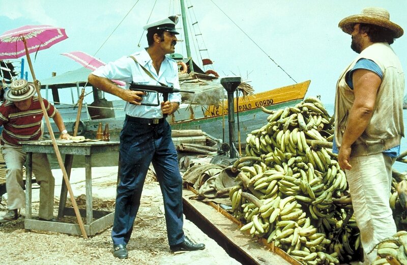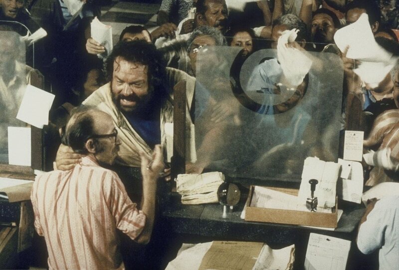Bananenhändler Joe (Bud Spencer) besitzt weder Ausweispapiere noch eine gültige Handelslizenz. Als ihm eines Tages eine Mafia-Organisation den Bananenhandel abspenstig macht, will er sich auf Biegen und Brechen die notwendigen Papiere besorgen.Bild: © KAB; ProSieben Media AG