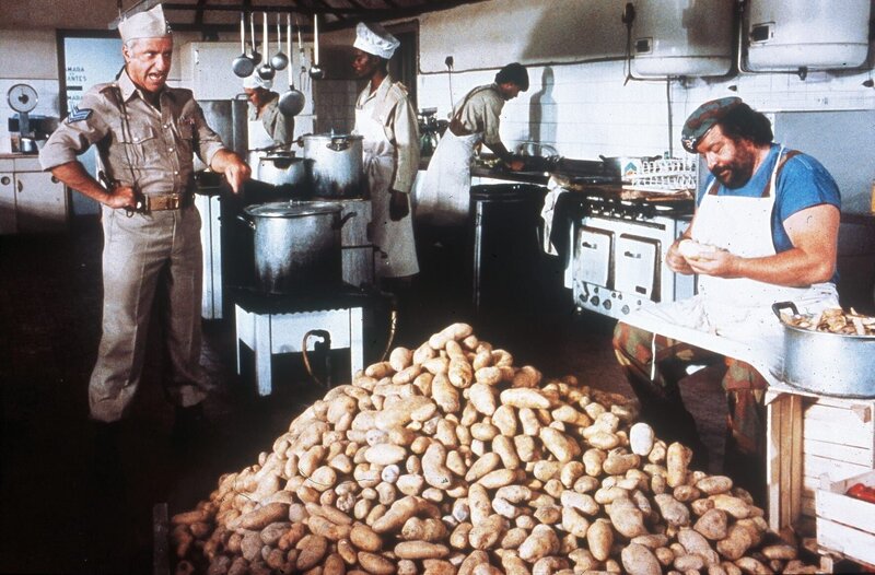 Schließlich verschlägt es Joe (Bud Spencer, li.) sogar zum Militär, wo er hofft, endlich die nötigen Papiere zu bekommen.Bild: © Marlyse Press Photo/MPP