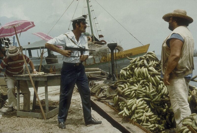 Banana Joe (Bud Spencer, r.) besitzt weder gültige Ausweispapiere noch eine Handelslizenz für seinen Bananenverkauf. Doch so leicht lässt er sich nicht unterkriegen ...Bild: © Tele München Gruppe