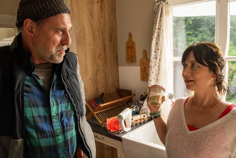 Forstarbeiter Harry (Thomas Loibl) kann nicht verhehlen, dass ihm die Mutter seines neuen Chefs, Pari Krüger (Inka Friedrich), mit ihrer direkten und fröhlichen Art gut gefällt.Bild: © ZDF und Susanne Bernhard
