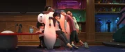 V.r.: Honey Lemon, Fred, GoGo und Wasabi chillen eine Runde auf dem luftgepolsterten Roboter Baymax und genießen dessen Wärmefunktion, während Hiro verbissen einer Spur folgt.Bild: © Disney+
