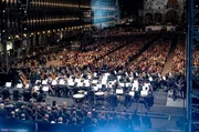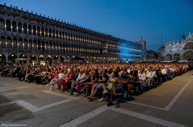 Das Teatro La Fenice in Venedig lädt zu einem Spektakel auf den Markusplatz ein, bei dem in imposanter Kulisse Beethovens Neunte Symphonie unter der Leitung von Juraj Valcuha zu hören ist.Bild: © Roberto Moro