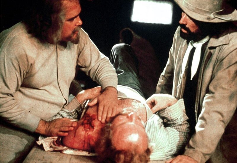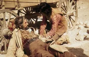 WDR Fernsehen BEGRABT DIE W.LFE IN DER SCHLUCHT, Spielfilm, USA,1973 Regie: Ted Kotcheff, Buch: Alan Sharp, am Dienstag (26.02.02) um 22:00 Uhr. Der HSndler Copeland (David Huddlestone, li.) bemYht sich um Marshal Gifford (Jack Warden, Mitte), den der Outlaw Deans (Gregory Peck) angeschossen hat.Bild: © DMB / WDR/DEGETO