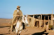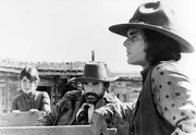 Der verletzte Outlaw Deans (Gregory Peck, Mitte) will seine letzte Chance nutzen, um dem Marshal zu entkommen. Jetzt verabschiedet er sich von seinem Gefährten Billy (Desi Arnaz jr., rechts), der bei der jungen Ranchersfrau Esther (Sian Barbara Allen) zurück bleibt.Bild: © DMB / WDR, Source: WDR-Pressestelle/Bildredaktion