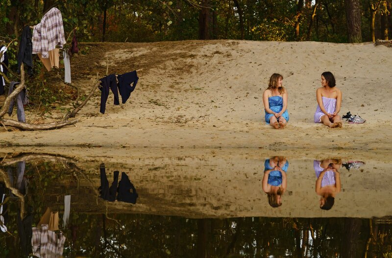 Die Klamotten müssen trocknen: Lolle (Felicitas Woll, li.) und Dana (Janina Uhse).Bild: © ARD Degeto/RBB/Real Film/Letterbox/Stefan Erhard