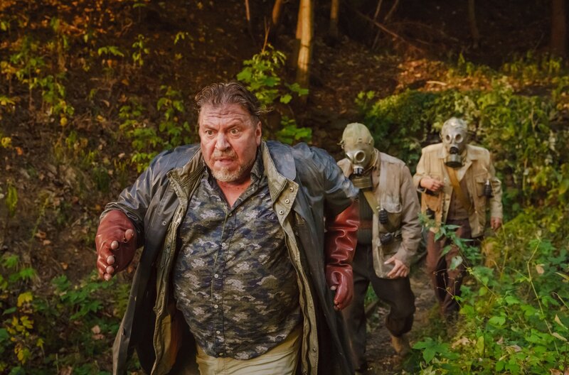 Motzmann (Armin Rohde, li.) möchte die flüchtigen Damen erwischen.Bild: © ARD Degeto/RBB/Real Film/Letterbox/Stefan Erhard