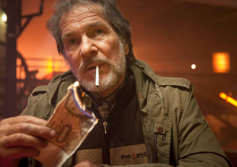 Joseph Komalschek (Götz George) provoziert die ihn überwachenden Polizisten, indem er Geldscheine verbrennt, die von einem Jahrzehnte zurückliegenden Beutezug stammen.