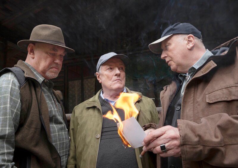 Klaus Barner (Manfred Zapatka, Mitte) und seine beiden Ex-Kollegen Heinz Braun (Thomas Thieme, re.) und Fritz Reet (Hans-Martin Stier) haben etwas zu verbergen.
