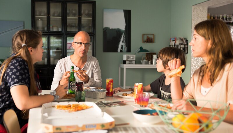 Petra (Ulrike C. Tscharre) und die Kinder Fee (Lotte Becker) und Jonas (Valemtin Wilcek) erkennen ihren Vater (Christoph Maria Herbst) kaum wieder - sie ahnen ja nicht, dass es sein Zwillingsbruder ist.