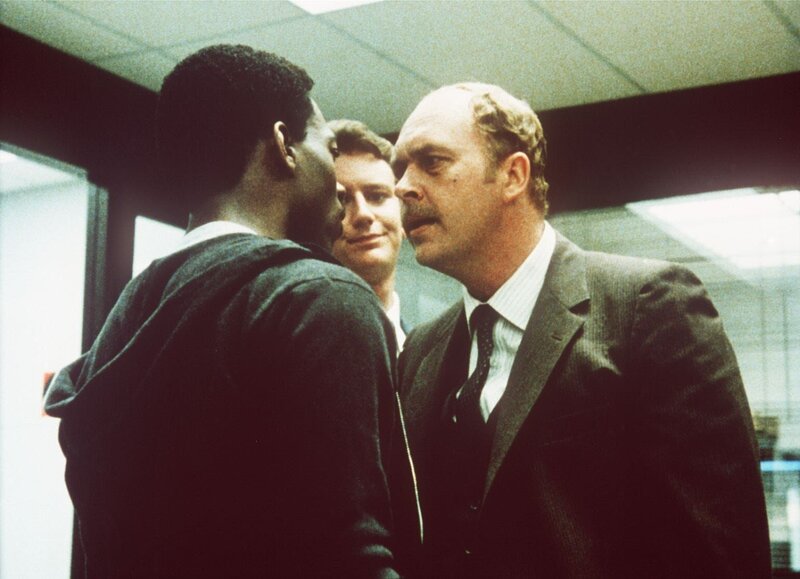 Chaotencop Axel (Eddie Murphy, l.) weiß, dass der schmierige Geschäftmann Victor Maitland (Steven Berkoff, r.) offensichtlich etwas mit dem Mord an seinem Freund zu tun hat. Für Maitland wiederum gibt es nur eines: Er muss Foley ausschalten!