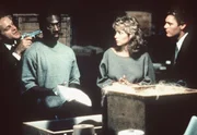In einem Lagerhaus des schmierigen Geschäftmannes Victor Maitland entdecken Axel (Eddie Muphy, 2.v.l.) und Jenny (Lisa Eilbacher, 2.v.r.) den gesuchten Beweis: Drogen! Doch Maitland hat den beiden eine Falle gestellt, und jetzt hilft auch Axels Maschinengewehr-Mundwerk nichts ...
