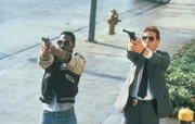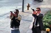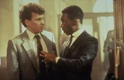 Bei der Aufklärung eines Mordes kommen Billy Rosewood (Judge Reinhold, r.) und Axel Foley (Eddie Murphy, l.) auf die Spur einer hervorragend organisierten Verbrecherbande ...Bild: © Kabel Eins