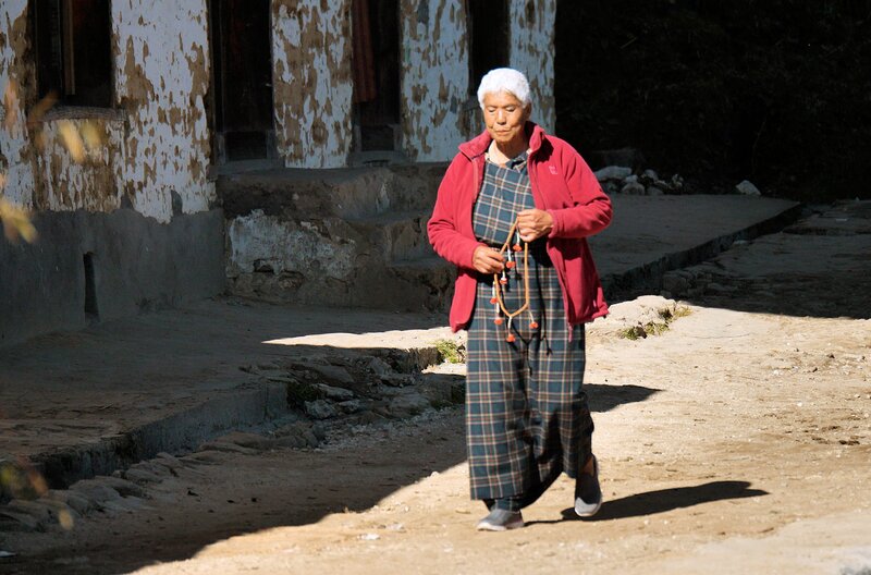 Großmutter Dema betet für ihre Gesundheit.Bild: © NDR/Sonam Rinzi