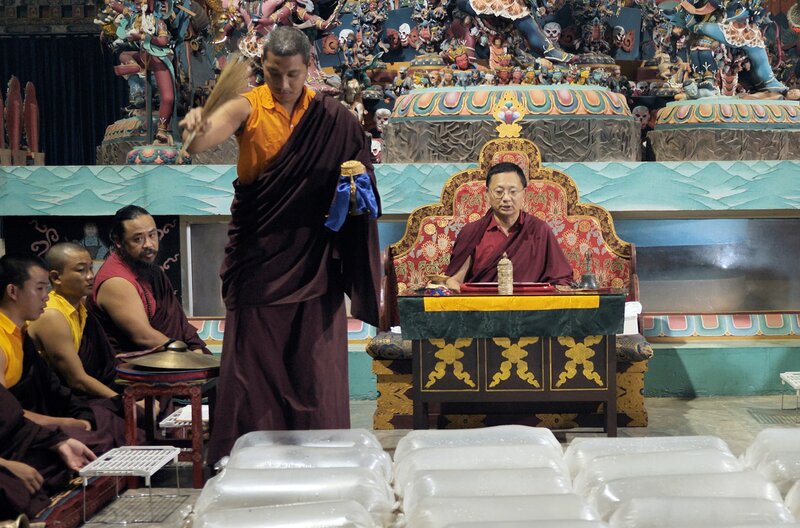 Mönche beim Ritual für die Rettung der Fische.Bild: © NDR/Sonam Rinzi