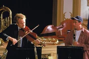 Vom Rechnen, Schreiben bis hin zum Theaterspielen mit Lehrer Eric Gordon (Bradley Whitford, r.): Billy (Adam Sandler, l.) kehrt in die Schule zurück und besucht jede Klasse, von der ersten bis zur zwölften, nochmal, um seinem Vater zu zeigen, dass er nicht dumm ist ...