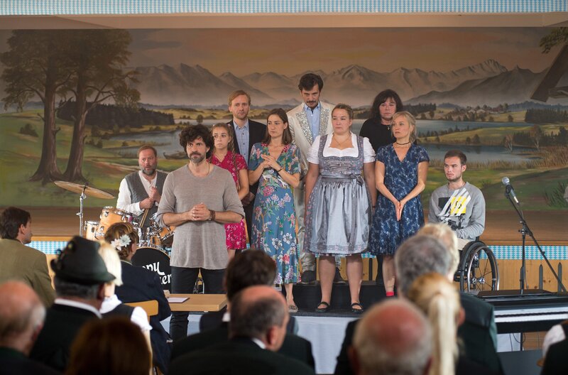 ARD Degeto BINGO IM KOPF, am Freitag (25.10.19) um 20:15 Uhr im ERSTEN. Mirkos Chor singt beim Wettbewerb (v. l. n. r.): Rainer (David Baalcke), Nele (Aleen Jana Kötter), Georg (Matthias Lier), Elena (Marie Leuenberger), Goran (René Geisler), Elke (Barbara Bauer), Mirkos Mutter (Gundi Ellert), Rosa (Eva Herzig) und Felix (Tom Gronau). © ARD Degeto/Thorsten Jander, honorarfrei - Verwendung gemäß der AGB im engen inhaltlichen, redaktionellen Zusammenhang mit genannter Degeto-Sendung und bei Nennung "Bild: ARD Degeto/Thorsten Jander" (S2+). ARD Degeto/Programmplanung und Presse, Tel: 069/1509-335, degeto-presse@degeto.de