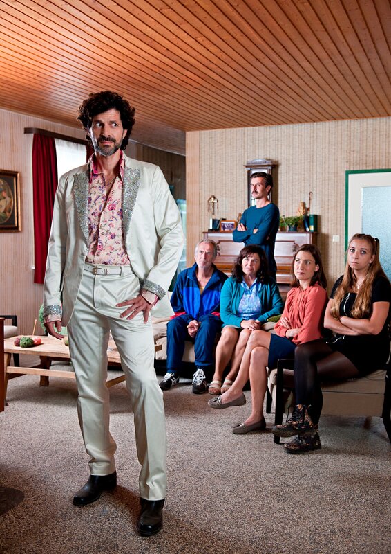 ARD Degeto BINGO IM KOPF, am Freitag (25.10.19) um 20:15 Uhr im ERSTEN. Der sinkende Schlagerstern Mirko Mortauk (Pasquale Aleardi, vorne) kehrt pleite und ausgebrannt nach Hause zurück. Die Freude seiner Eltern (Gundi Ellert, 3. v. re. und Peter Prager, 2. v. li.) und seinen Geschwistern Goran (René Geisler, hinten) und Elena (Marie Leuenberger, 2. v. re.) sowie seiner Nichte Nele (Aleen Jana Kötter) hält sich in Grenzen. © ARD Degeto/Thorsten Jander, honorarfrei - Verwendung gemäß der AGB im engen inhaltlichen, redaktionellen Zusammenhang mit genannter Degeto-Sendung und bei Nennung "Bild: ARD Degeto/Thorsten Jander" (S2+). ARD Degeto/Programmplanung und Presse, Tel: 069/1509-335, degeto-presse@degeto.de