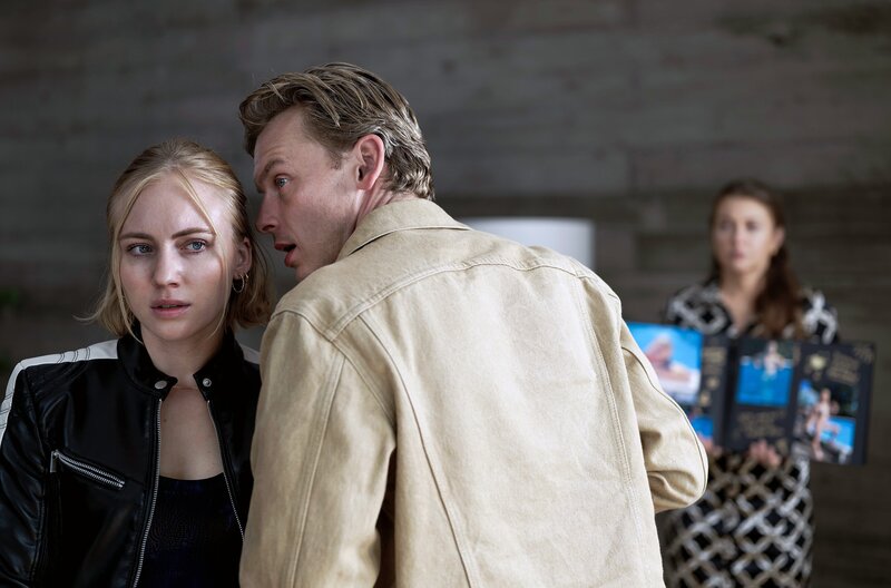Der abgebrühte Fotograf Thorsten (Franz Pätzold, Mi.) gibt Jungjournalistin Aga (Elisa Schlott, li.) einen Tipp für die Interviewführung.Bild: © Tatiana Vdovenko / ZDF