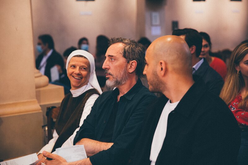 Schwester Catherine (Catherine Thiercelin) nimmt Gad (Gad Elmaleh, Mitte) mit in die Kirche.Bild: © Laura Gilli