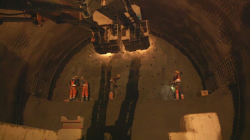 Erweitert werden die unterirdischen Verkehrswege unter anderem durch kontrollierte Sprengungen. Hierfür befestigen die Arbeiter Zündstoff.Bild: © N24 Doku