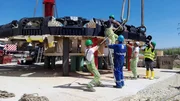 Das 200 Tonnen schwere Schneidrad muss gründlich für die Verladung gesichert werden.Bild: © N24 Doku