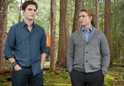 Als das Wolfsrudel Bella angreifen will, müssen Emmett (Kellan Lutz, l.), Alice (Ashley Greene , M.) und Jasper (Jackson Rathbone, r.) zusammenhalten. Sie werden ihre Familie verteidigen, koste es, was es wolle ...Bild: © RTL