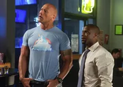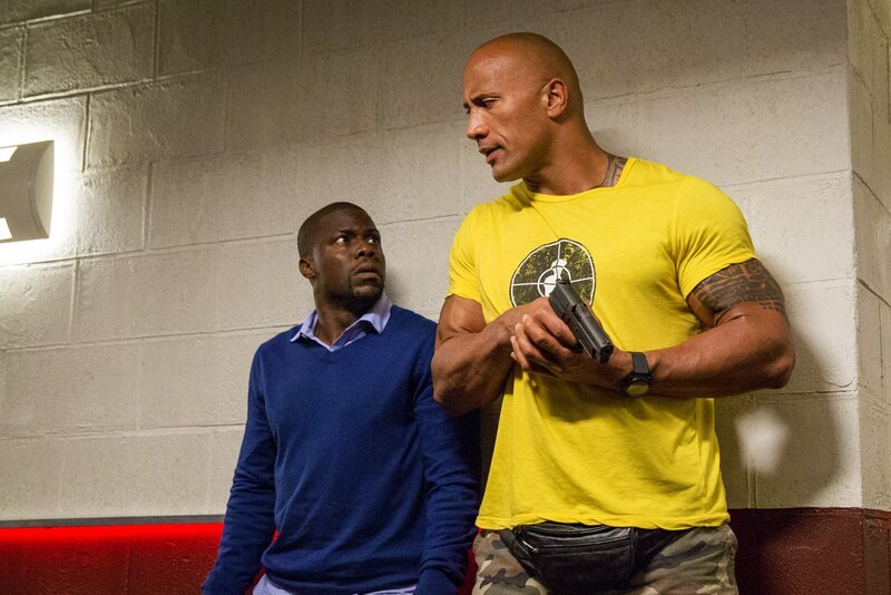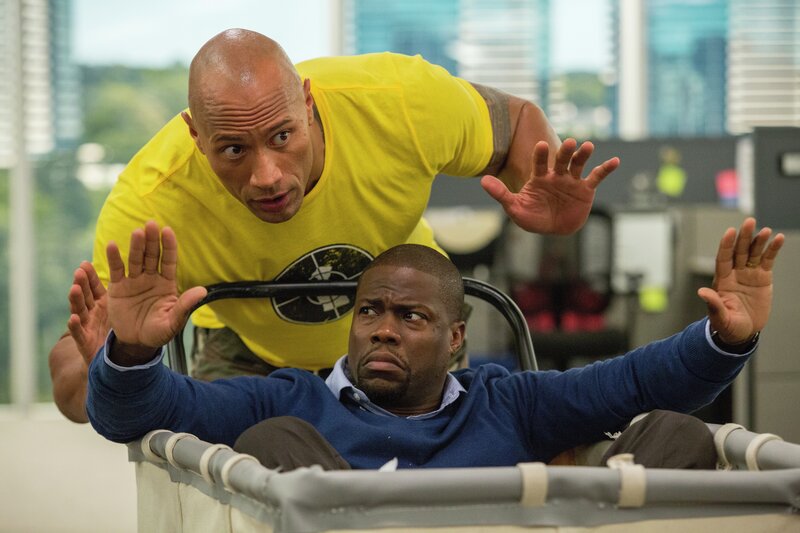 Calvin (Kevin Hart, l.) hält eigentlich absolut nichts davon, sein Leben zu riskieren. Doch er befindet sich wegen Bob (Dwayne Johnson, r.) mitten in einem gefährlichen Abenteuer.Bild: © 2016 Warner Bros. Entertainment Inc., Universal City Studios Productions LLLP and Ratpac Dune Entertainment LLC. All Rights Reserved. / Claire Folger Lizenzbild frei