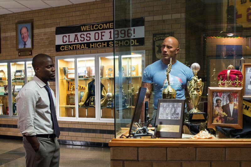 Calvin (Kevin Hart, l.) und Bob (Dwayne Johnson, r.) machen einen Abstecher in ihre alte Schule.Bild: © 2016 Warner Bros. Entertainment Inc., Universal City Studios Productions LLLP and Ratpac Dune Entertainment LLC. All Rights Reserved. / Claire Folger Lizenzbild frei