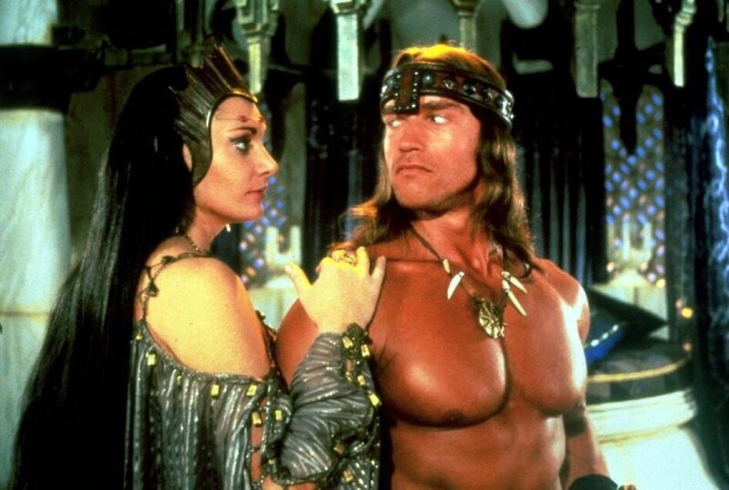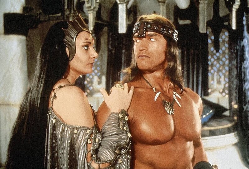 Die gleichermaßen schöne wie bösartige Königin Taramis (Sarah Douglas) bittet Conan (Arnold Schwarzenegger) um Hilfe. Er soll ihre Nichte, Prinzessin Jehnna, zum Schloss des Zauberers Toth-Amon geleiten, um einen magischen Diamanten zu beschaffen.Bild: © Tele 5