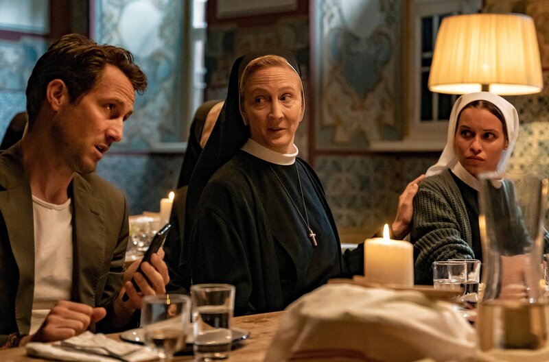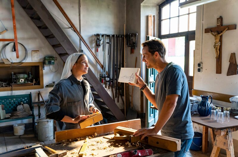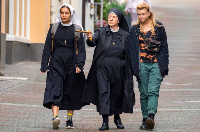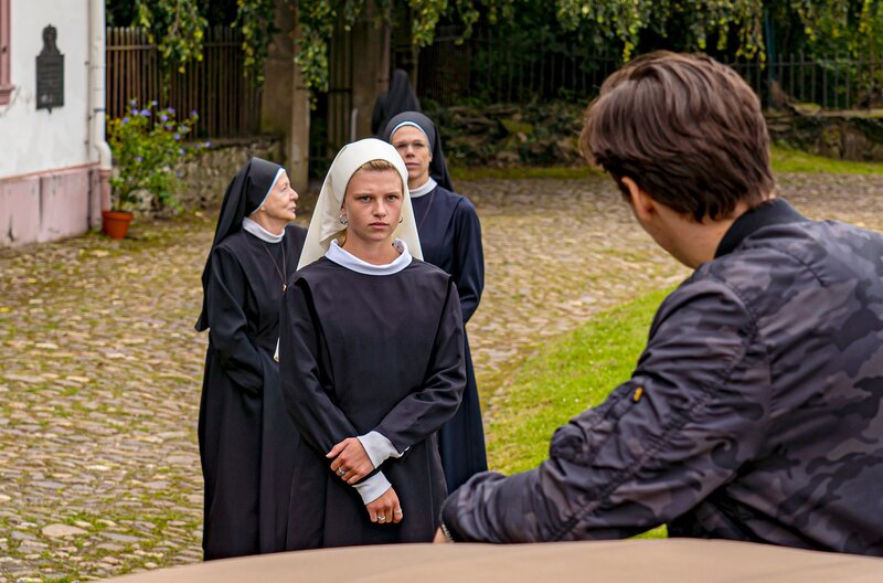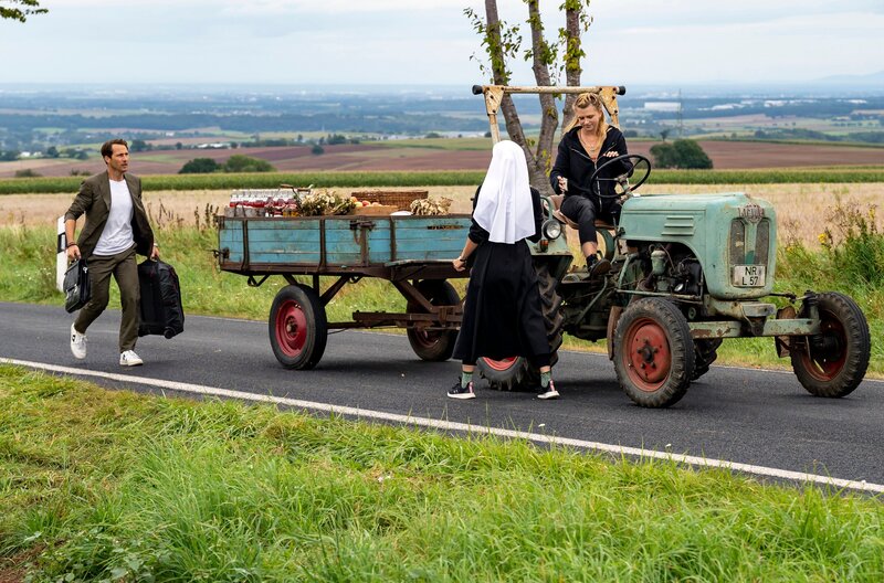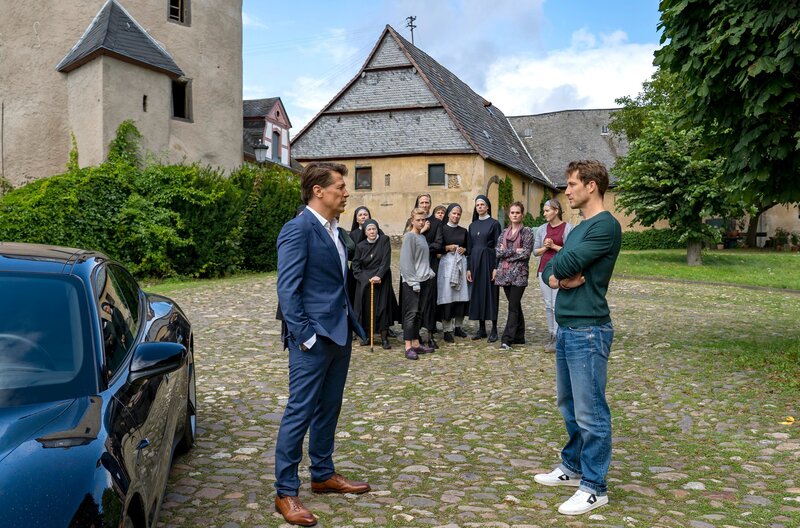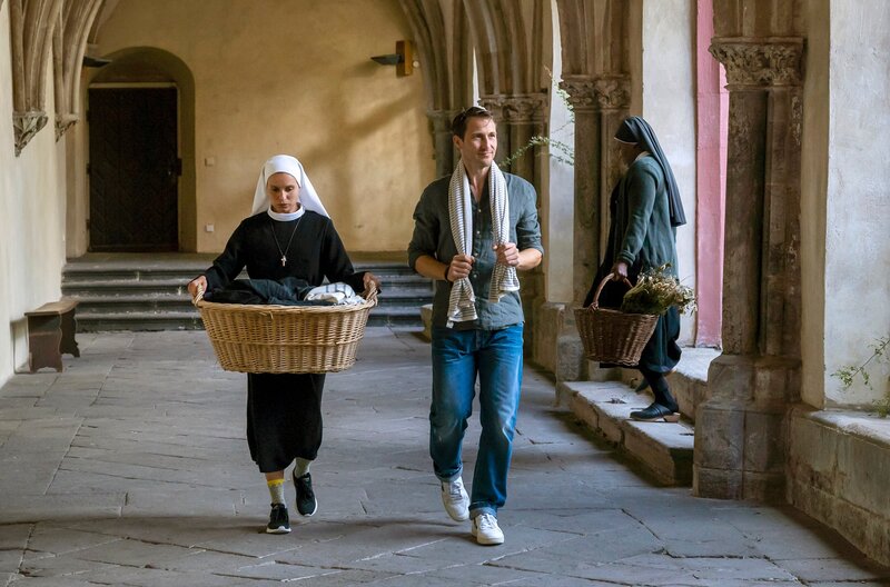 Er steht auf pompöse Markeninszenierungen, sie ist mit dem äußeren Schein längst durch - und doch sprühen nicht nur verbal die Funken zwischen dem zynisch auftretenden Werbeprofi Conrad und der idealistischen Ordensschwester Charlotte. "Da hilft nur beten!" heißt es für das Hauptdarstellerduo Kristin Suckow und David Rott in der romantischen Komödie. Regisseur Michael Rowitz verfilmte das Drehbuch von Xaõ Seffcheque über zwei Menschen, die sich ungewollt näherkommen und beieinander mehr in Bewegung bringen, als es ihnen eigentlich lieb ist. Die ehemalige Prämonstratenserabtei Rommersdorf bei Koblenz ist eine der eindrucksvollen Kulissen für den ebenso modernen wie humorvollen Fernsehfilm über Glauben, Liebe und Werte. Für die junge Nonne Charlotte (Kristin Suckow) ist das strenge Klosterleben keine Einschränkung, sondern eine Befreiung von ihrem früheren Leben auf der Überholspur. Als der großspurige Werbeprofi Conrad (David Rott) auf einer Geschäftsreise in ihrem Kloster strandet, fühlt sie sich in ihrer Entscheidung bestätigt. Die Äbtissin Katharina (Anja Karmanski) ebenso wie die sturmerprobte Schwester Hedi (Christine Schorn) sehen jedoch in dem ungebetenen Gast ein Geschenk des Himmels. Seine Marketingkünste könnten helfen, das Kloster aus den roten Zahlen zu führen und damit einen drohenden Verkauf abzuwenden. Charlotte würde zwar lieber nach einer verschollenen Bulle aus dem 18. Jahrhundert suchen, die einer Legende zufolge den Bestand von Sankt Lioba auf ewig garantiert. Notgedrungen lässt sie sich aber auf die Zusammenarbeit mit dem Kampagnenmacher ein. Während Conrad im Auftrag seines Chefs (Wolfram Grandezka) insgeheim andere Pläne verfolgt, lernt er Charlotte besser kennen. Als Conrad erfährt, was die Ordensschwester im Kloster sucht und gefunden hat, beginnt er, sein Leben infrage zu stellen.