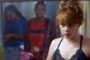 Im Heim sieht sich Dalva (Zelda Samson, re.) der gnadenlosen Beurteilung der anderen Jugendlichen ausgesetzt – insbesondere der ihrer Zimmergenossin Samia (Fanta Guirassy, Mi.).Bild: © Caroline Guimbal/Helicotronc/Tripode Productions/RET