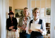 Saskia (Julia Jäger, Mitte) macht ihr kesses Patenkind Lucy (Olga von Luckwald) mit ihrem Gutsverwalter Egon (Christof Wackernagel) bekannt.Bild: © HR/Degeto/Martin Menke