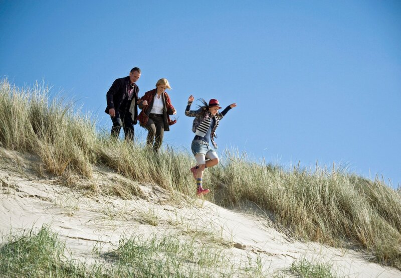 Mit Volldampf voraus: Lucy (Olga von Luckwald), ihre Patentante Saskia (Julia Jäger, Mitte) und ihr Vater Alex (Heio von Stetten) machen einen Ausflug ans Meer.Bild: © ARD Degeto/Martin Menke